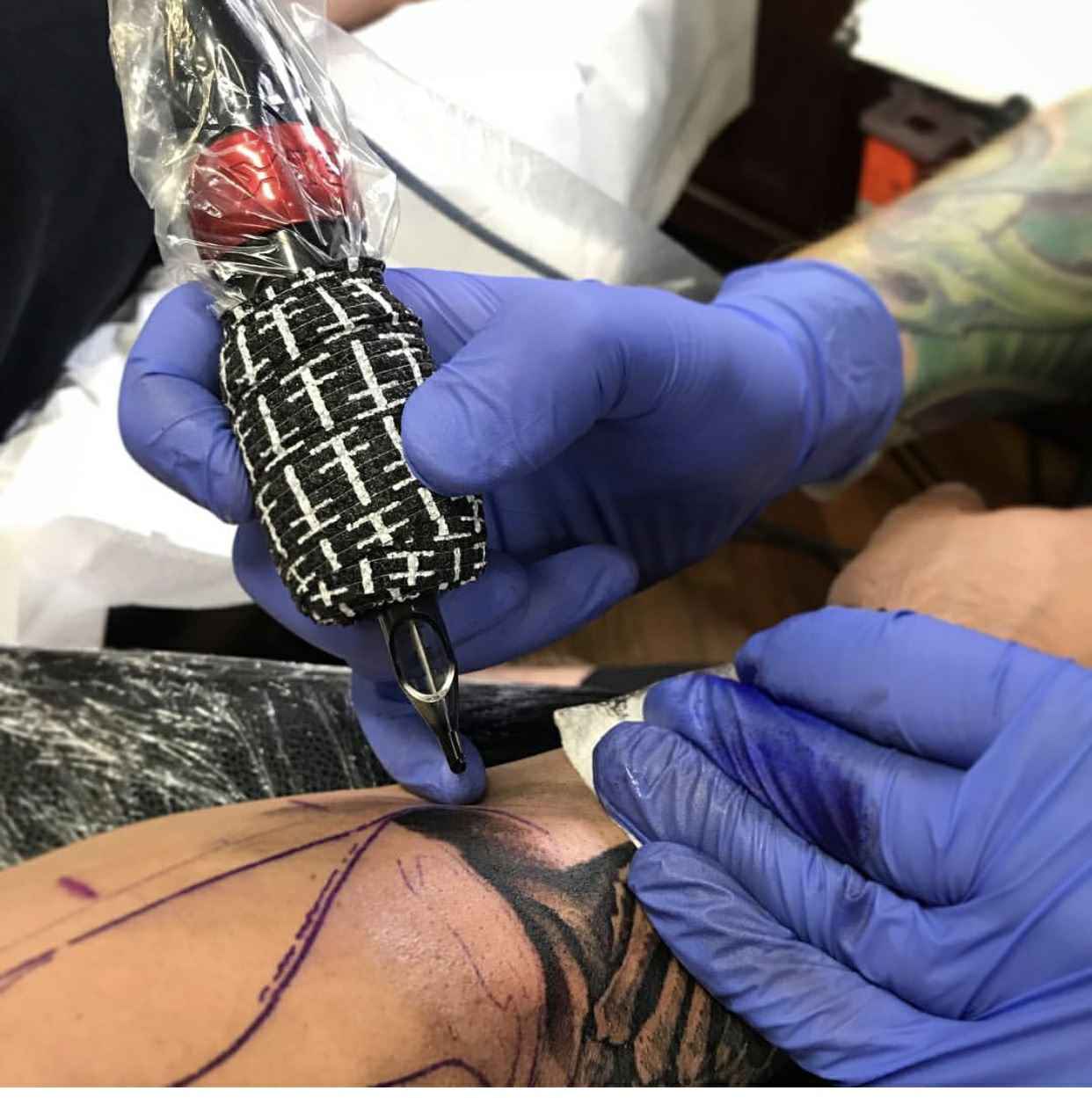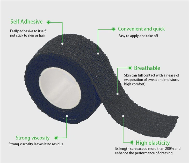 ຜ້າພັນບາດຫນຽວສໍາລັບ tattoo ແມ່ນຜ້າພັນຫໍ່ທີ່ເຮັດດ້ວຍຜ້າທີ່ເຮັດດ້ວຍຜ້າທີ່ບໍ່ມີໃບ 90% ແລະ 10% spandex, ມັນແມ່ນຜ້າພັນບາດຫນຽວ. ມັນມັກຈະຖືກນໍາໃຊ້ເພື່ອຫໍ່ຮອບເຄື່ອງມືຂອງເຄື່ອງ tattoo, ເຊິ່ງຊ່ວຍປ້ອງກັນບໍ່ໃຫ້ມືຈັບຂອງນິ້ວມືຂອງທ່ານ, ເຊິ່ງສາມາດຊ່ວຍໃຫ້ທ່ານແຕ້ມຮູບ tattoo ໄດ້ອອກແບບໃຫ້ຖືກຕ້ອງກວ່າ.